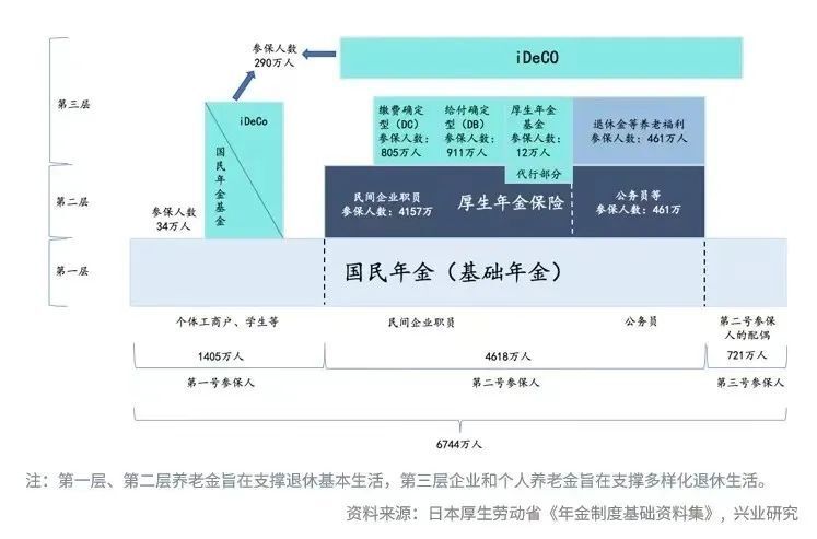 日本的养老金制度由多个层次构成,其体系主要分为国民基础养老金和厚生养老金。