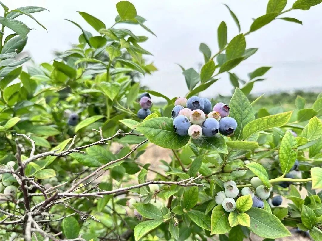 一颗颗硕大丰腴的蓝莓成串挂在枝头