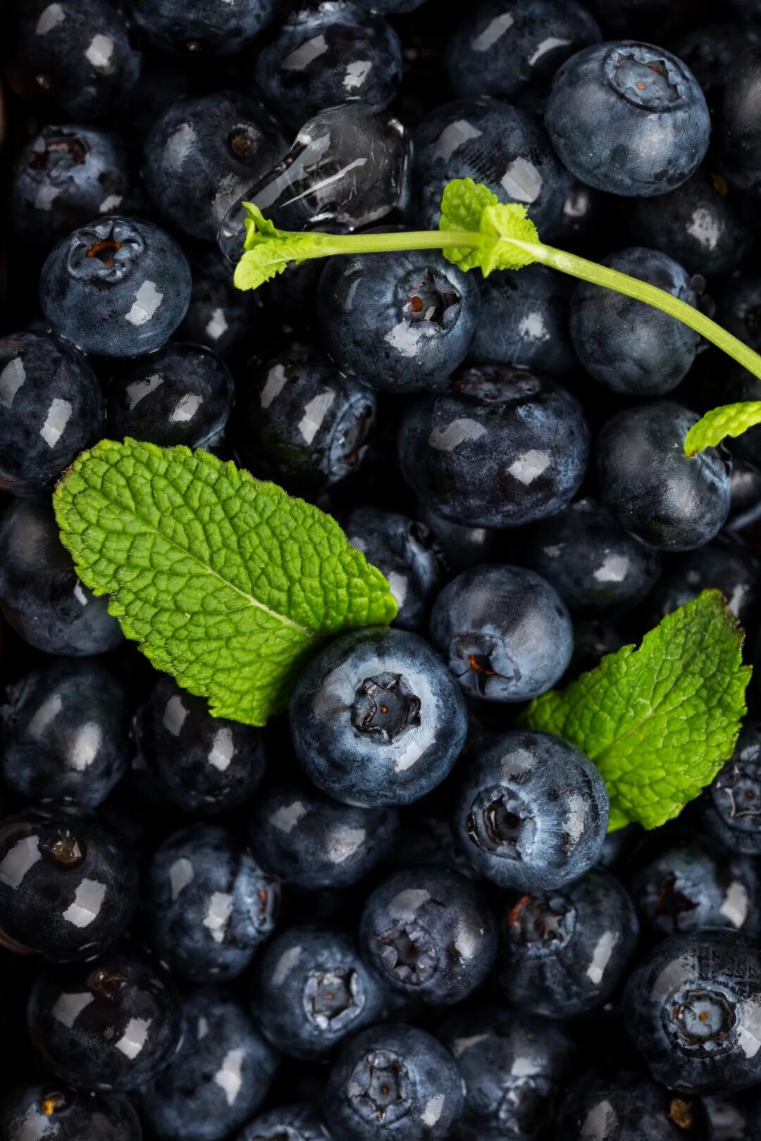 一颗颗成熟的蓝莓果儿表面都裹着一层白霜