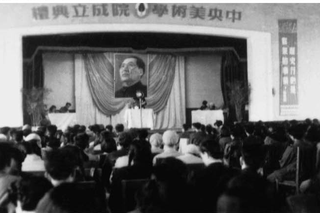 1949年11月,国立北平艺术专科学校和华北大学三部美术系合并,华北大学三部美术系的前身是成立于1938年的延安鲁迅艺术学院美术系。经-中央人民政府批准,成立国立美术学院,毛泽东主席题写院名。徐悲鸿担任第一任院长。