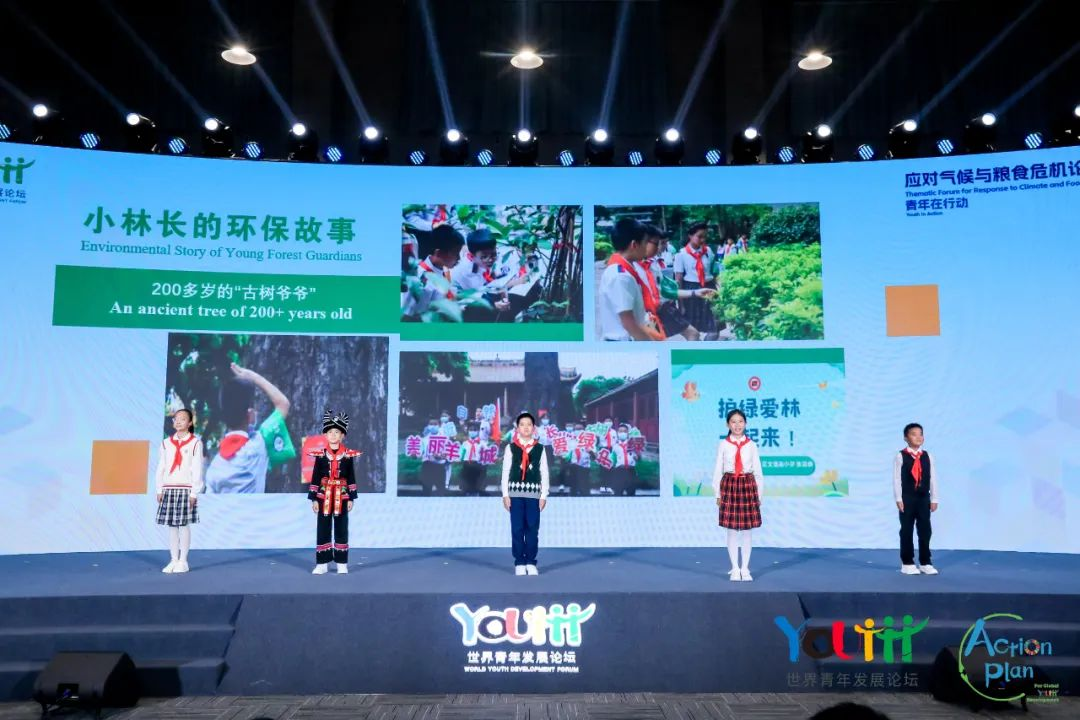 11月1日,北京首钢园2023年世界青年发展论坛应对气候与粮食危机主题论坛上“环保少年说”环节来自国内各个城市的小学生发表演讲这些小学生是来自“美丽中国·绿色希望工程——环保小卫士”公益项目的小小志愿者他们化身为一个个“小村长”“小河长”“小林长”“小树长”“小米粒”以少年儿童视角展示生态文明建设和美丽中国建设的中国实践和中国行动,向世界发出了中国孩子的环保心声,为应对气候与粮食安全贡献儿童智慧和儿童力量。