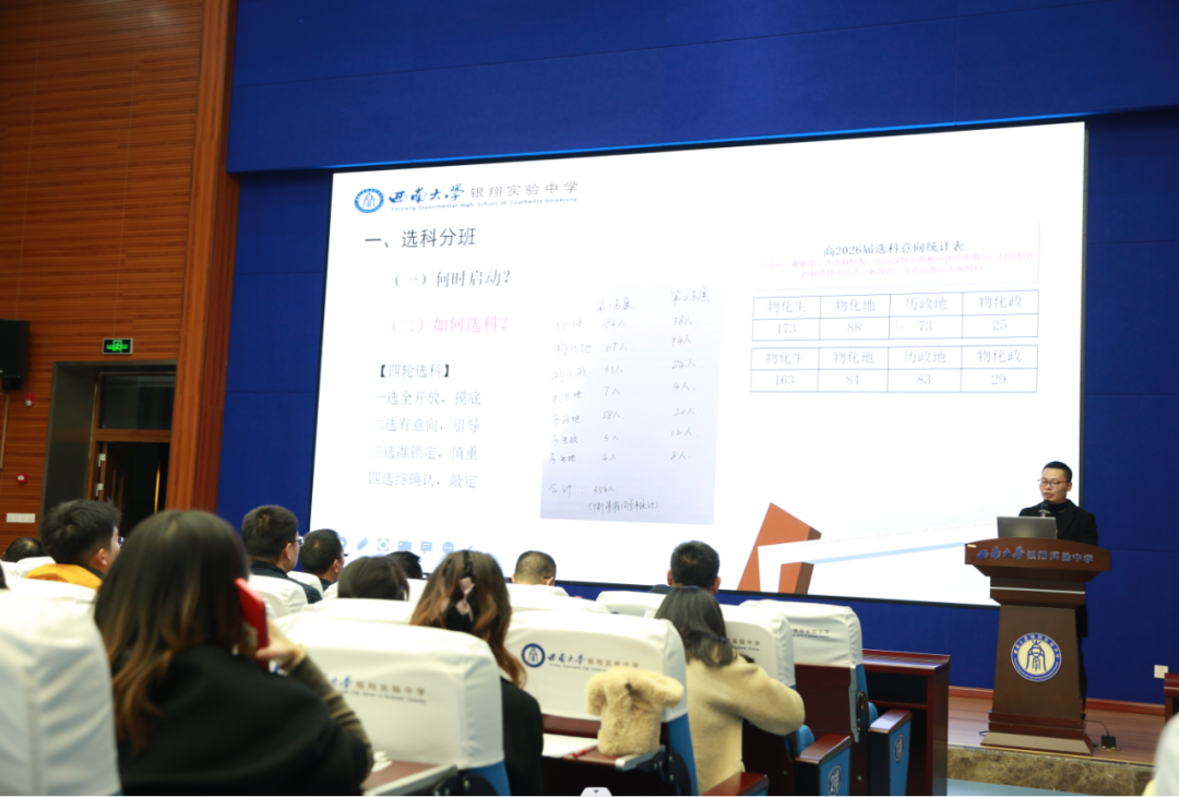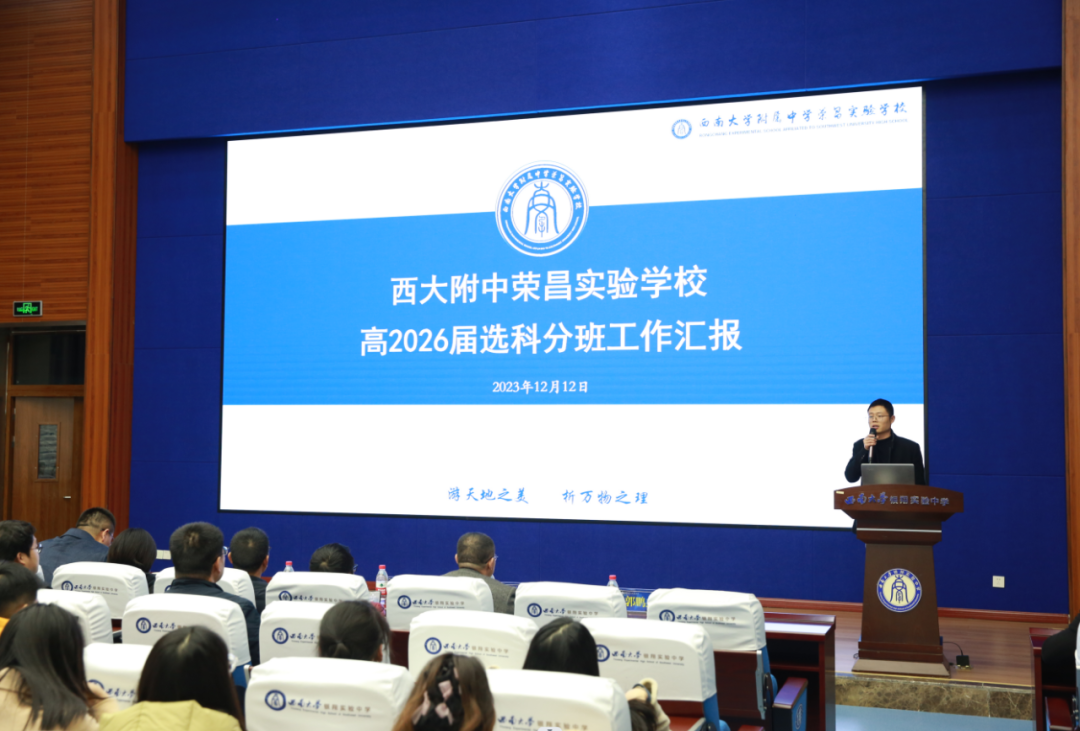 冬日共研,卓越教育。十二月,正值高一年级选科分班季。面对选科分班,新班组建,如何做好相应的年级规划、班级建设?如何抓牢抓实班级管理,树立良好班风、学风,让教育教学有机融合发展?12月12日,来自本部、竹林校区、荣昌校区、银翔校区的高一教师齐聚我校,举行高2026届教育教学研讨会。