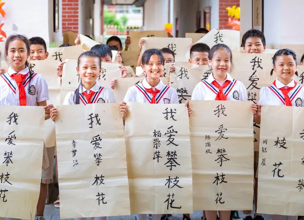 7月,攀枝花市米易县第二小学的学生们在书法课上展示自己的作品(王东/摄)