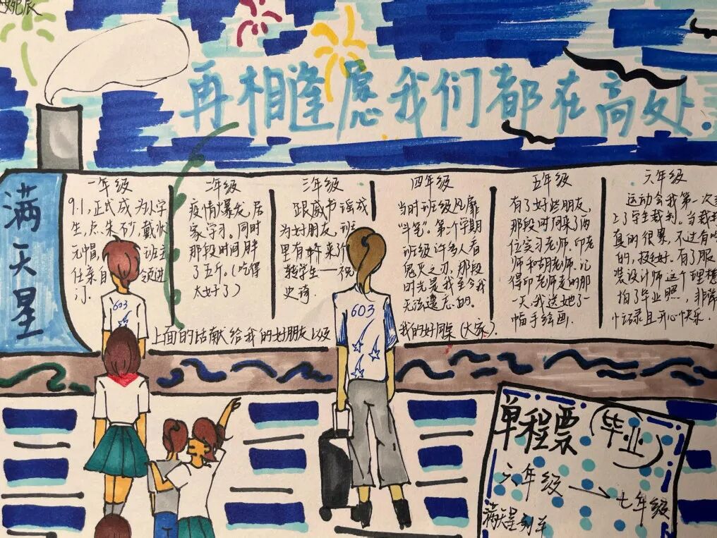还记得我们一起为了出好黑板报而努力,各种画稿贴满了教室的一角,那是我们创造力的展现。