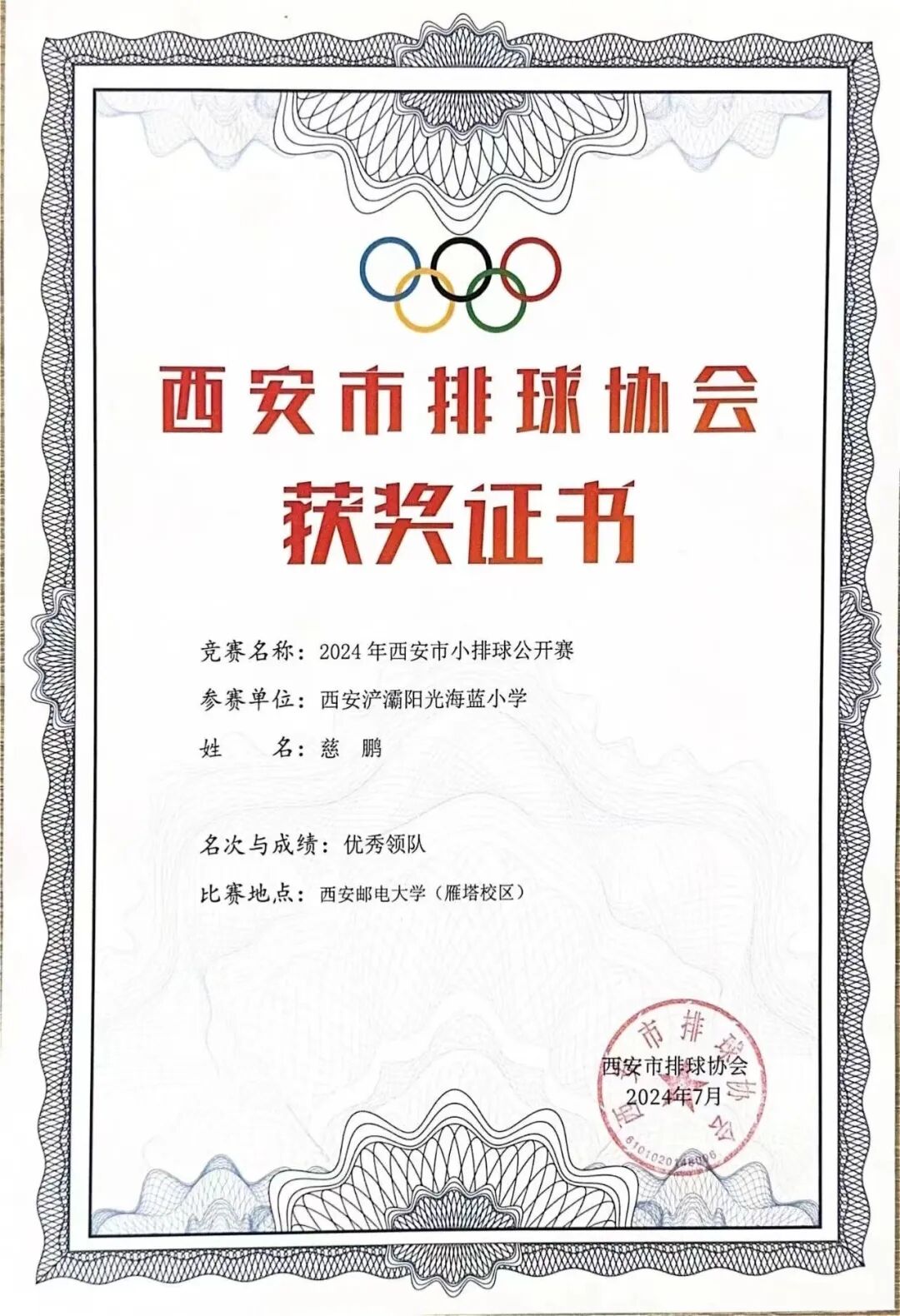 7月9日,在西安邮电大学(雁塔校区)体育馆举办的2024年西安市小排球公开赛,我校20名排球小将,获得U10混合组二等奖、U12女子组三等奖,同时在小排球综合素质测试比赛中获得U12女子组第七名的好成绩!