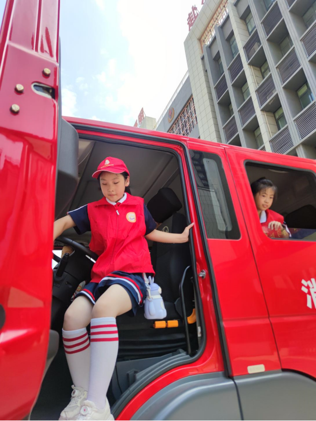 通过零距离接触体验消防车辆,学生们初步了解它们的功能和装备。消防车辆通常配备有灭火器、水枪、排烟机,简易救生设备等。在消防队员的引导下,学生们纷纷体验了一把乘坐消防车的感觉,同时对消防车辆有了更加直观的了解。