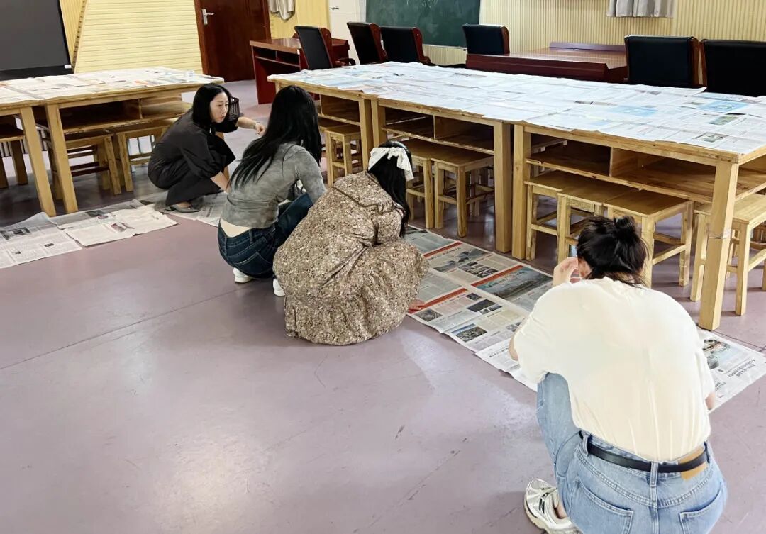 为了活动能够顺利开展,学校工会委员和采购员多次沟通协商,确定方案;美术工会组全体教师布置现场、培训练习。