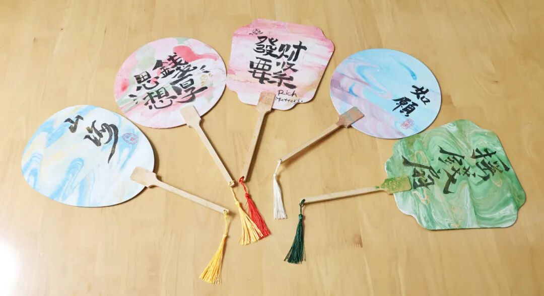 定制一扇清风,收获快乐。工会组老师们发挥创造力和想象力,尽情DIY。他们在扇面上画上美丽的图案、写上祝福的话语……祝愿祖国繁荣昌盛、家庭幸福安康!