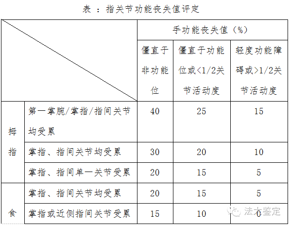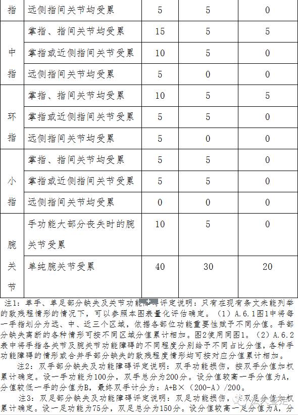 A.5 关节功能障碍a)关节功能完全丧失 非功能位关节僵直、固定或关节周围其他原因导致关节连枷状或严重不稳,以致无法完成其功能活动。 b)关节功能重度障碍