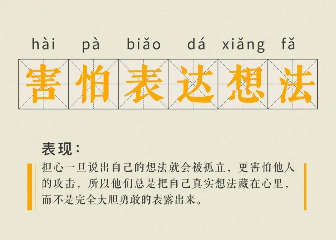 这些讨好型人格的人总是觉得没有别的选择,必须要求自己努力符合别人的期待。但是,他们的心里却往往藏着许多别人不知道的秘密,犹豫和埋怨。