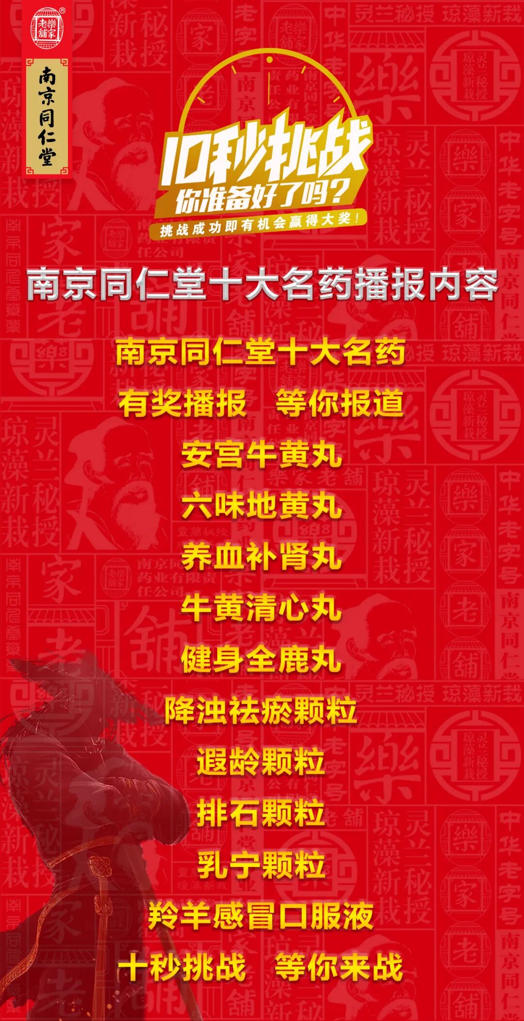 “南京同仁堂十大名药有奖播报挑战赛”活动详情: