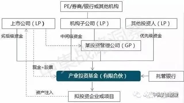 基金结构:由上市公司联合其他机构共同出资,不存在优先劣后之差别。一般基金会有开放期,视基金发展情况及潜在项目的投资进展由GP对外募集投资或者由上市公司或机构进行增资。