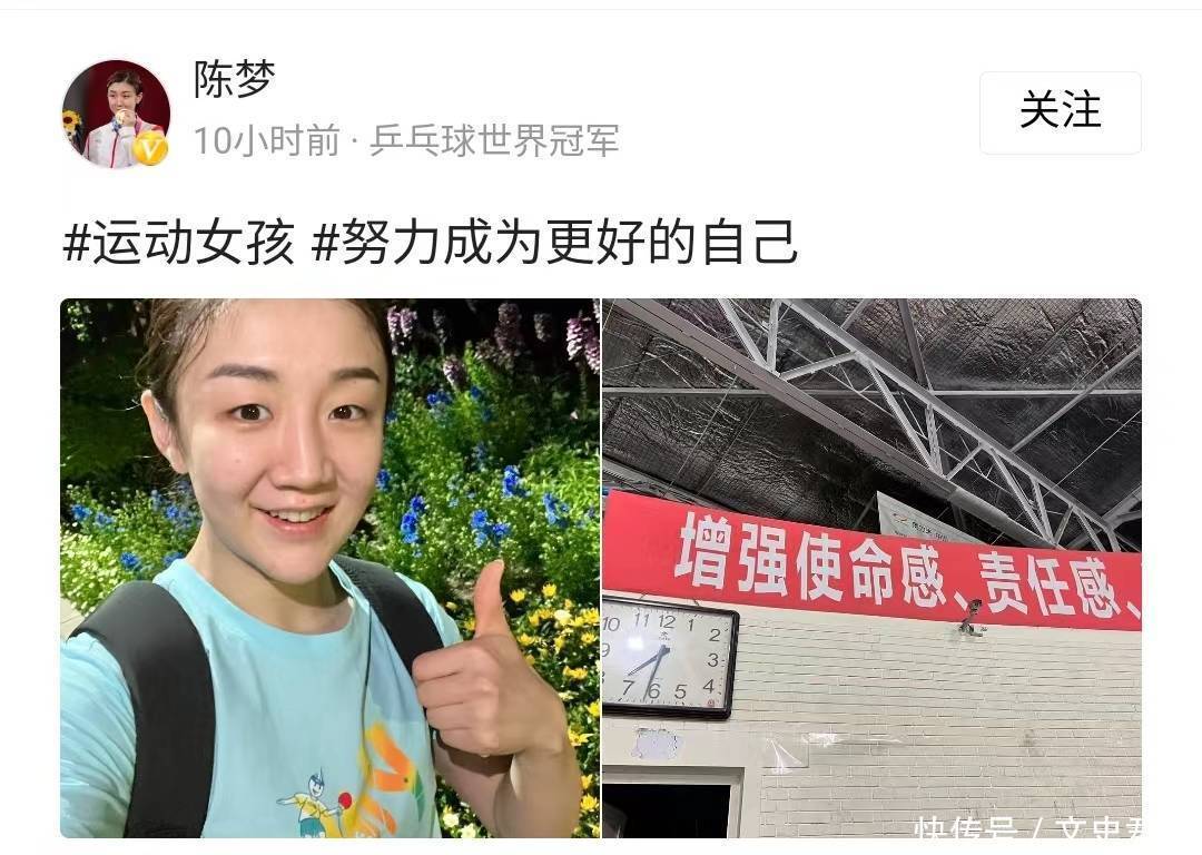 而对于自己接下来的奥运会女单的竞争,4月26日陈梦也是在社交媒体上官宣决定,那就是:“努力成为更好的自己。”在社交媒体上,陈梦晒出了自己训练结束后的照片,陈梦也是通过晒出墙上“增强使命感、责任感、荣誉感”来为自己打气,从陈梦的话语中,我们也能够感受到哪怕当下处境被动,但是陈梦的决心从来没有动摇过,我们也期待在接下来的沙特大满贯赛中,陈梦能够交出出色的成绩单,生涯不留下任何的遗憾。