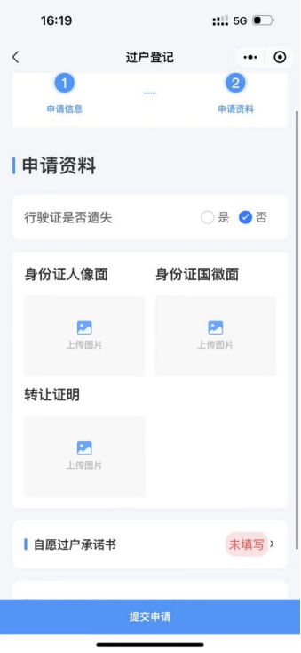 3.点击下一步拍摄并上传旧车主身份证明原件和转让证明,在《电动自行车变更登记申请表》原车辆所有人位置签名并确认;