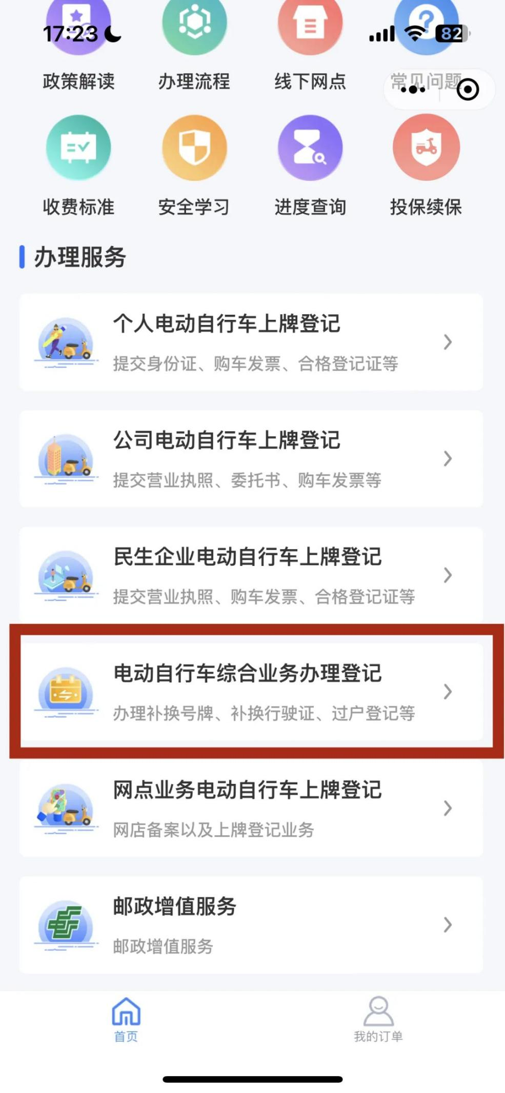 1.登录“东莞交警”微信公众号,点击“业务办理-电动自行车服务”,根据车辆所有人类型选择个人、单位、民生企业电动自行车上牌登记,进行实名认证,提交申请材料;