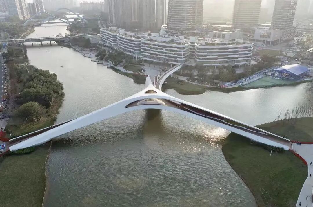 三肢桥体汇聚核心,桥身曲线光带错动交织形成的“未来之窗”,作为景观焦点与三湾对望,成为蕉门河上的闪耀新星。(更多聚星桥信息,可点此查看)
