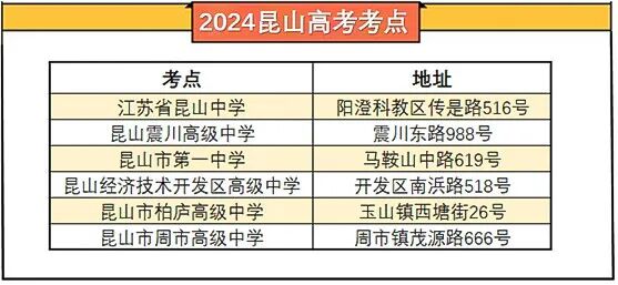 今年共设昆山中学、震川高级中学、市第一中学、开发区高级中学、柏庐高级中学和周市高级中学6个考点。