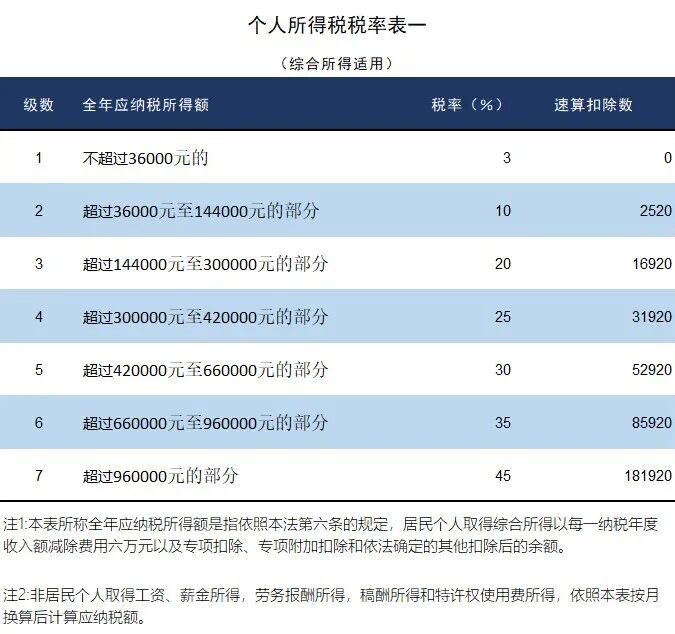 注:本表所称全年应纳税所得额是指依照《中华人民共和国个人所得税法》第六条的规定,以每一纳税年度的收入总额减除成本、费用以及损失后的余额。