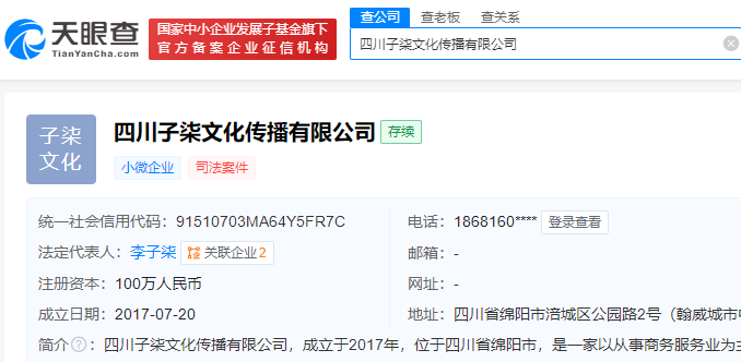 四川子柒文化传播有限公司发生工商变更,法定代表人、执行董事及大股东均由李佳佳变更为李子柒。
