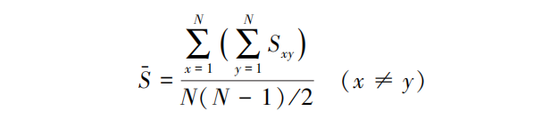 式中,Sxy是节点x、y的结构对等性,0≤Sxy≤1,a是节点x、y的共同邻居节点数量,b是x的邻居节点而非y的邻居节点数量,c是y的邻居节点而非x的邻居节点数量。基于此,整体网络的结构对等性指标为: