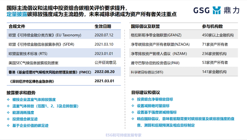 还有一点值得注意的,香港证监会也有新的工作部署。联交所对上市公司有ESG披露要求,这项要求已经实施多年。证监会针对资管机构已经发布两个通函,从2019年到2021年已经进行了升级。目前针对于金融机构的要求非常具体,8月20日已经开始实施。通函规定,资管机构必须管理和披露投资组合层面的气候风险。管理的概念包括量化气候风险的相关性、重大性,计算投资组合的碳足迹并进行披露。香港有很多中资资管机构都在接受鼎力的服务,特别是碳数据。我们与证监会和香港资管机构有很多的互动,欢迎大家关注。