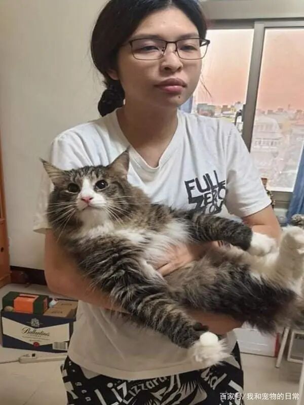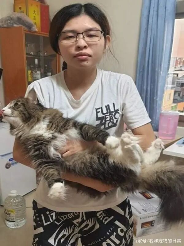 郑小姐在半夜两点听见门外有动静,一开门发现竟然是一只巨大的挪威森林猫!