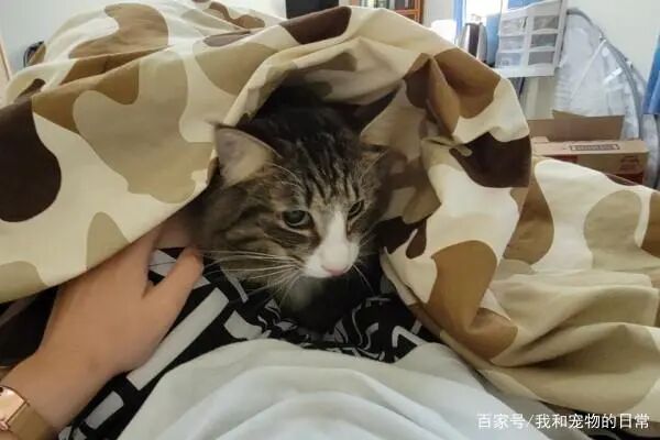 吃饱喝足后它就开始对郑小姐撒娇,不停钻棉被蹭蹭要求陪玩!