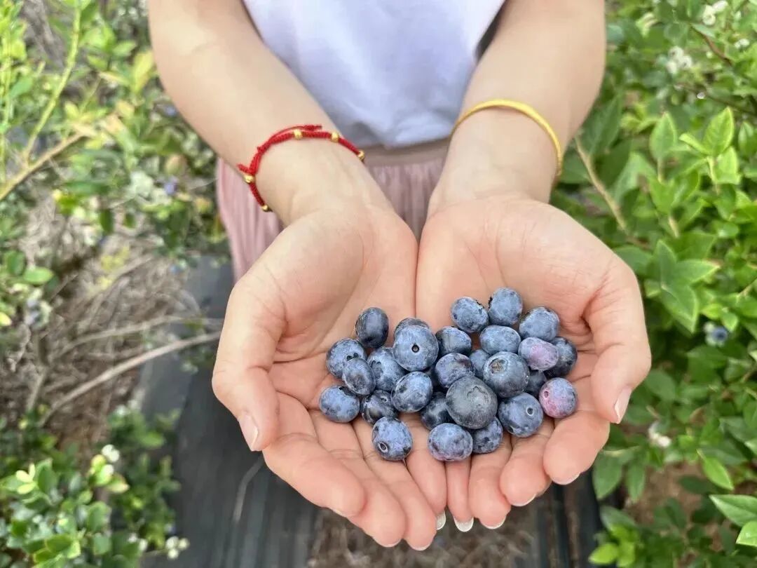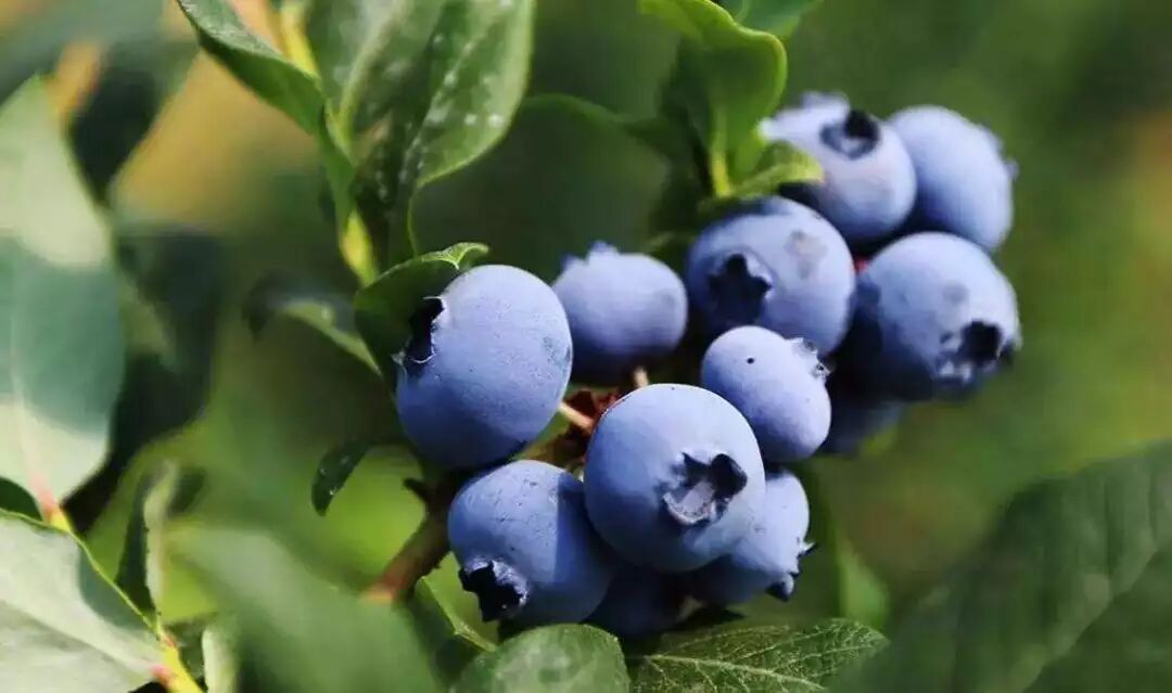 一颗颗硕大丰腴的蓝莓成串挂在枝头