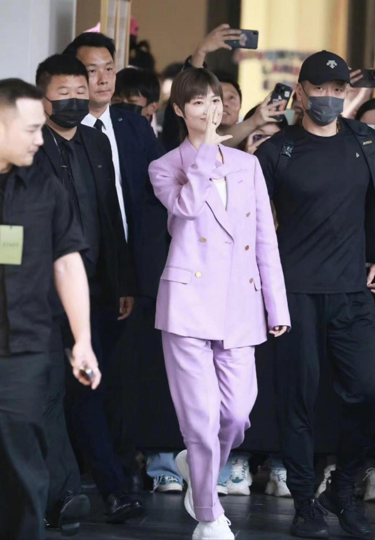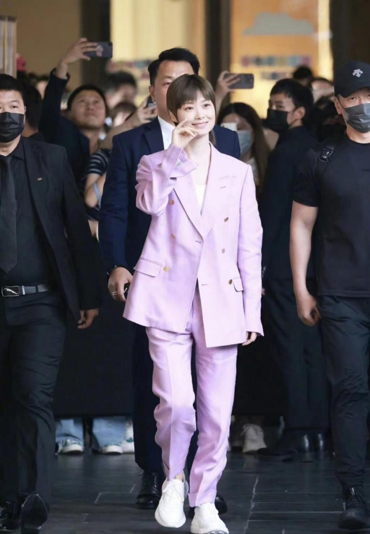 李宇春在参加各种活动时,西装的上身率很高,各种颜色,各种款式,穿出了中性风格的魅力。不过,这次穿西装套装真是罕见翻车,紫色的西装套装,满身的褶皱,还有些起球,没有控制好版型身高优势没体现出来,看上去就像五五分。