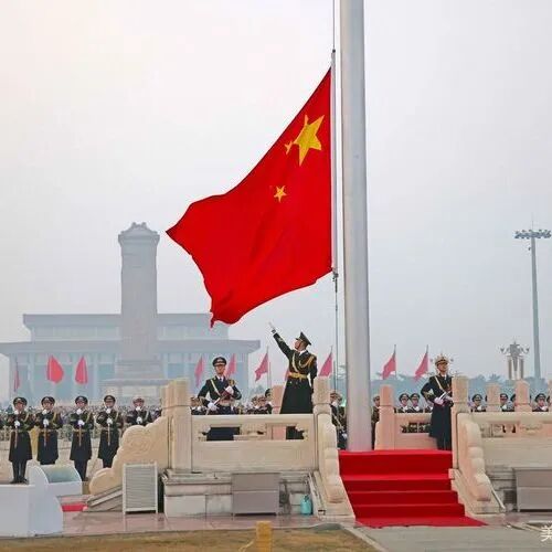 伴随着东方的一缕阳光,中国人民解放军仪仗大队国旗护卫队的仪仗队员同往常一样,以昂扬的斗志,精神抖擞的迈着整齐划一步伐、出天安门、过金水桥,迈着铿锵有力的正步跨过长安街,在庄严肃穆的国歌声中,五星红旗冉冉升起。