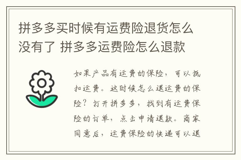 拼多多运费保险我们知道如何退款。 消费者可按照上述操作对产品进行退款,并申请运费保险赔偿。 但如果商品不存在运费风险,则可能是上述原因造成的,请消费者了解清楚。