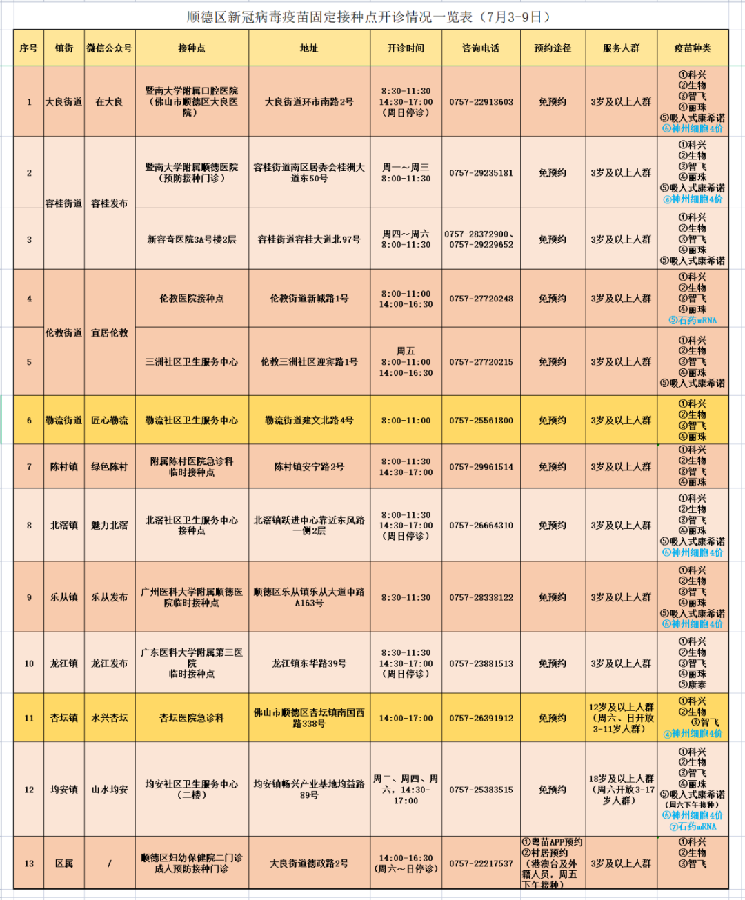 顺德区疾控中心提醒,目前,顺德区灭活疫苗(中生、科兴、康泰)、重组蛋白疫苗(智飞、丽珠)、吸入式康希诺腺病毒载体疫苗等供应充足。建议符合条件的人群满足时间间隔要求后,可尽快完成疫苗接种。