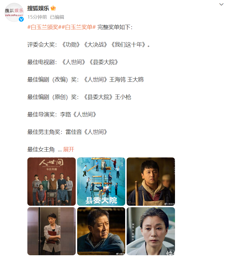 而从公布提名之后,历时长达一个月紧张又刺激的评选环节,刚刚,备受期待的白玉兰获奖名单也终于正式出炉了!