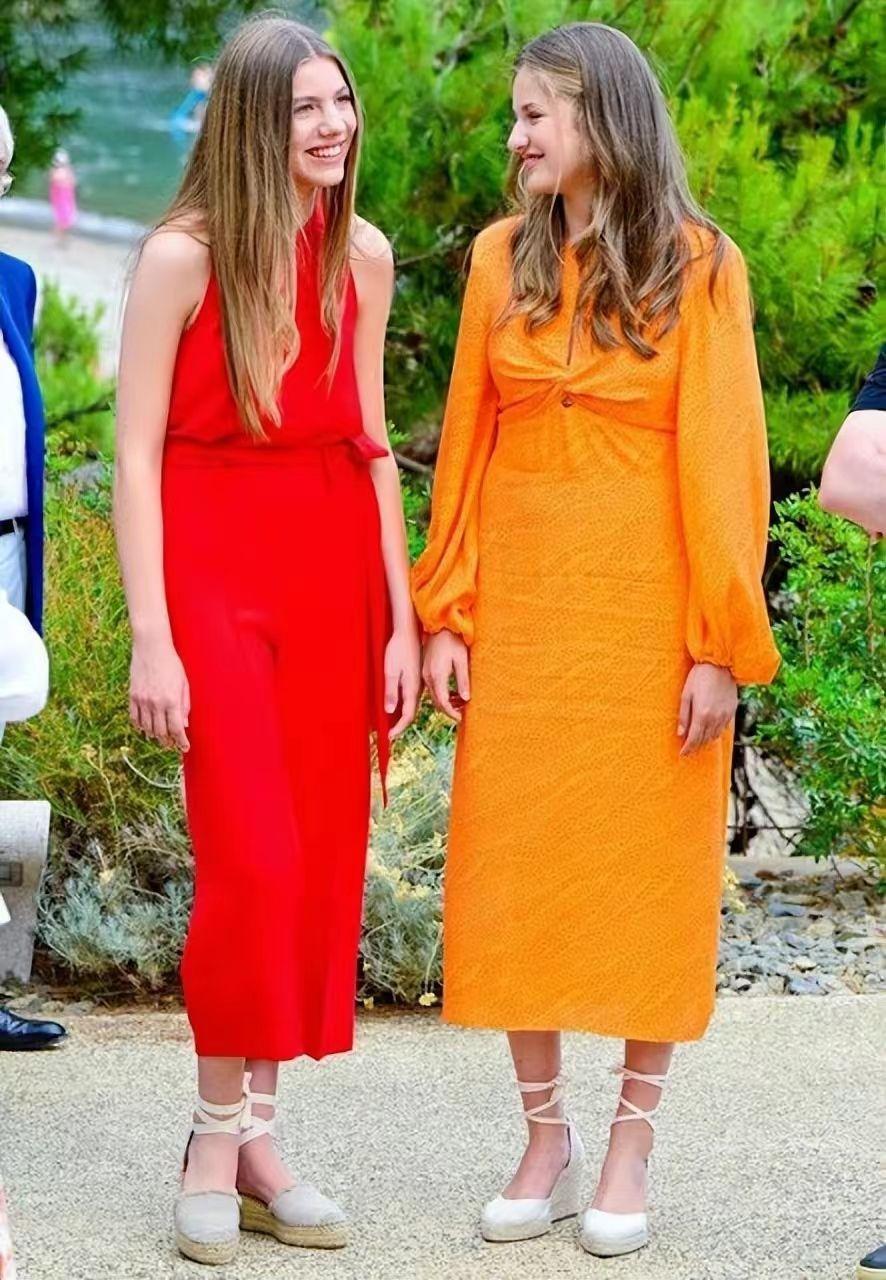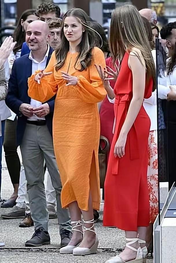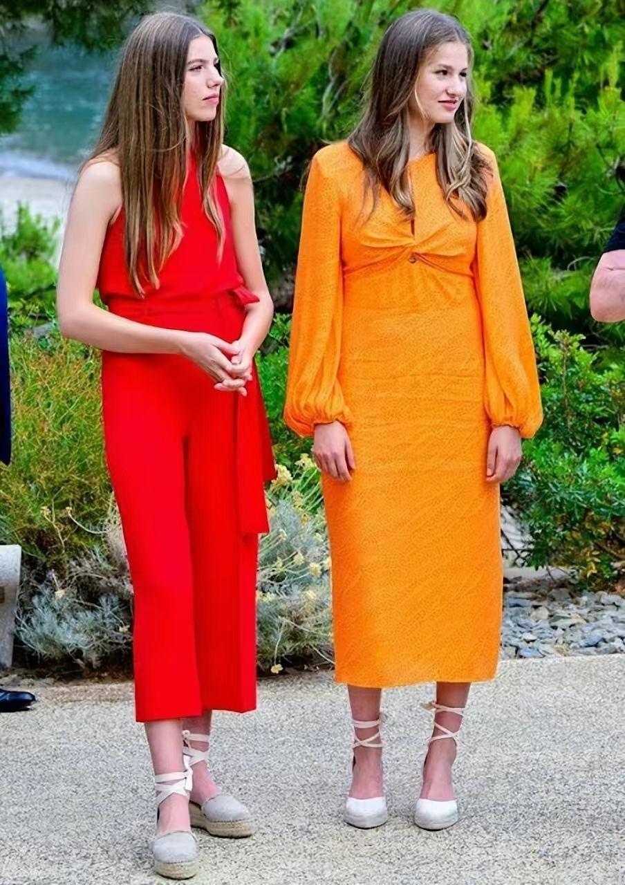 当地时间7月4日,西班牙两位公主独自营业,长公主莱昂诺尔正在经历晚来的青春发育期,加上为了适应接下来为期三年的军事训练,诺拉确实“壮实”了不少,这身造型没有很好的修饰身材,反而显得格外臃肿壮硕了。而妹妹索菲亚,身材气质却蜕变成功,一身摩登红衣,看起来反而比带着牙套的姐姐还美。两姐妹的感情还是一如既往的好,手牵手走在路上。