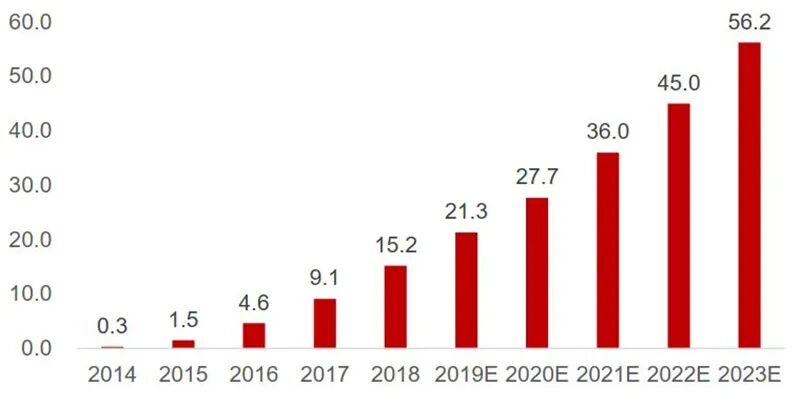 由于中国居民消费水平提升,消费主力群体代际变迁等因素,搭载语音助手的智能设备的消费量将会有所增长,推动中国语音助手市场规模进一步扩大。预计到2023年,中国语音助手市场规模将增长至570.3亿元。