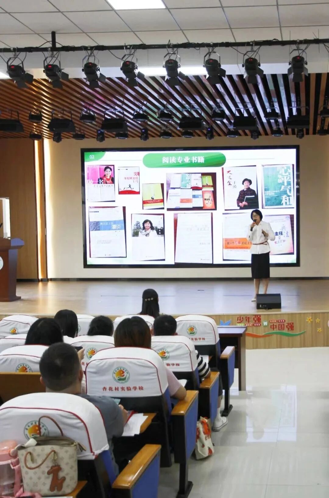 接着她结合曾经担任班主任以来的工作经历以及身边的班主任事迹,分享自身的成长经历:听专家报告;阅读专业书籍;保持正念、躬身实践。