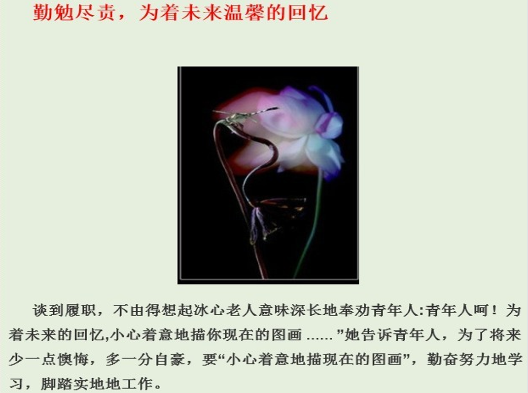 孩子们的开花期各不相同,老师们一定要有耐心和爱心。歌德曾说:“生命的旅行不仅是为了到达目的地,更是为了在旅行时感受生命。”教育,也是一场生命的旅行!钱校长的教育故事如同一篇清丽的散文诗: