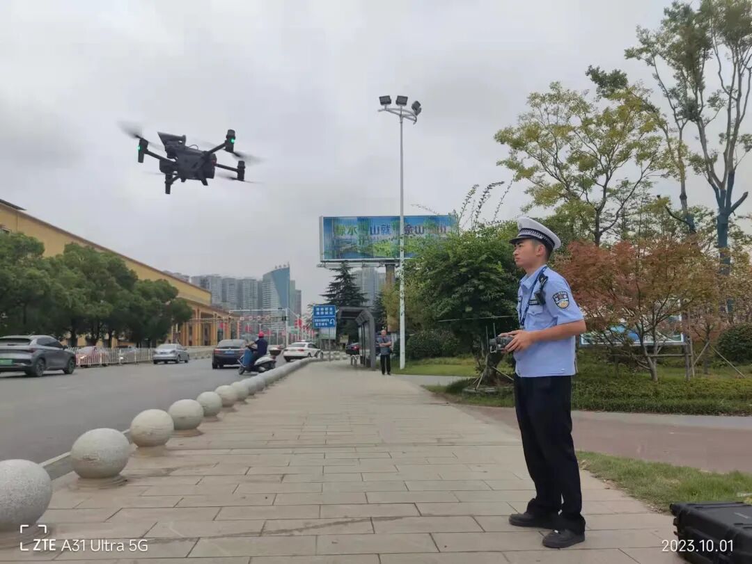 市公安局交警支队依托永州“快反135”机制,出动空中快警无人机对湘江西路、宋家洲大桥等中心城区重点路段开展巡查,并实时与路面执勤警力相配合,精准、及时指挥疏导交通;发现有影响交通的违停车辆、驾乘摩托车不戴安全头盔等情形时,民警立即通过无人机进行空中喊话,督促违停车辆立即驶离、摩托车驾乘人员戴好安全头盔,引导广大市民安全、文明出行。