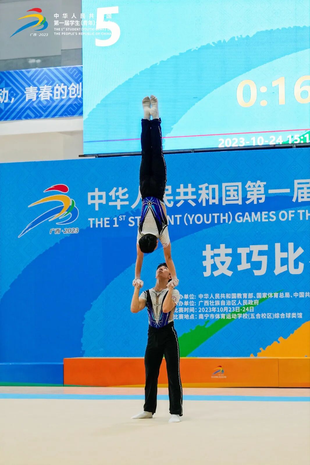 核心提示:10月24日,第一届全国学生(青年)运动会(公开组)技巧项目比赛在南宁市体育运动学校(五合校区)综合球类馆收官。经过为期两天