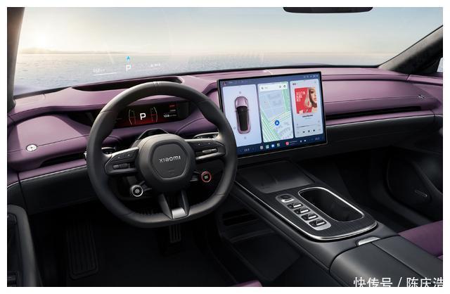 ?????? 走进内饰,小米SU7也是非常的豪华,高端大气还简约的中控台布局,看起来非常的舒服,当然周围的用料也是精挑细选,除了细腻的软材料以外,还加入了较多缝线工艺、镀铬饰条、木纹饰板的点缀,将档次感直接拉满,当然56英寸的HUD抬头显示、配合7.1英寸的液晶仪表盘、16.1英寸的悬浮式大屏,不仅科技感特别浓郁,同时还加入了澎湃OS车载智能系统,以及高通骁龙8295智能芯片,具有连续识别、可见即可说的人机交互功能。