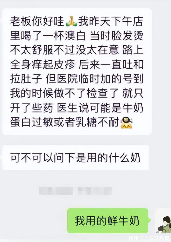 事情的起因是这样的,一名咖啡店的老板在个人的朋友圈晒了一张截图,一名女同学在自己店里点了杯咖啡澳白,结果喝完之后过敏了,上吐下泻好不凄惨。