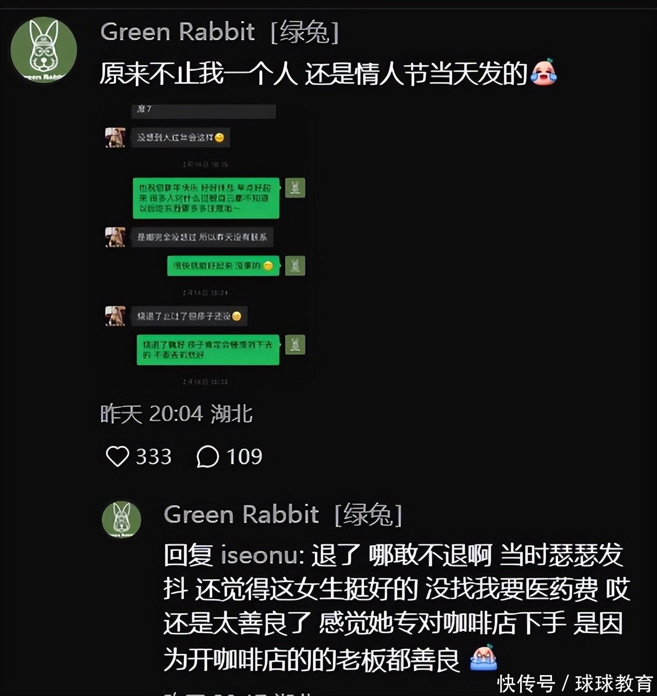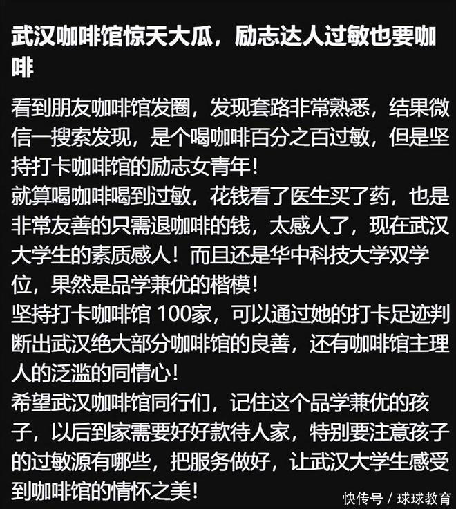对此,有同校的大大学生发文指责:过敏还坚持喝咖啡,就为了每次白嫖几十块,也是现在的咖啡店老板太善良了,才能全都被这种品行低劣的人欺骗。