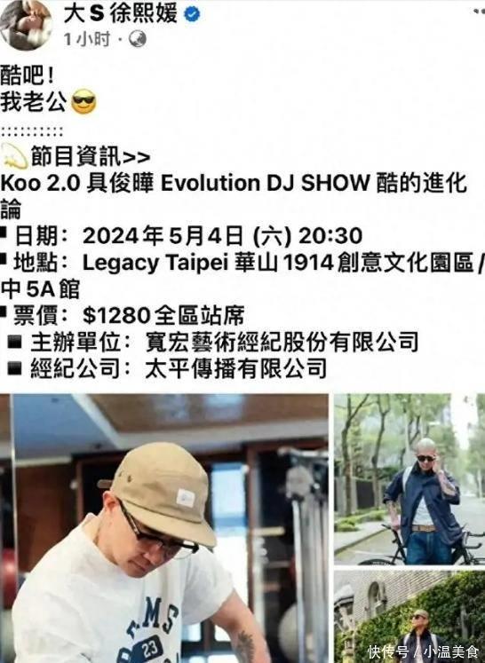 此外,具俊晔将在5月份开办专场DJ秀,虽然票价只有大约300元,而且不过400张票,但始终卖不动,甚至还出现了退票情况,以至于大S不得不亲自发动态替他宣传,还配文说“酷吧!我老公。”