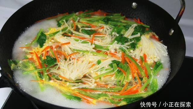 1、主要食材就是金针菇、菠菜、胡萝卜,首先金针菇去掉根部,用手撕成小朵,放入淘米水中浸泡10分钟?,然后水开大多冲洗几遍;