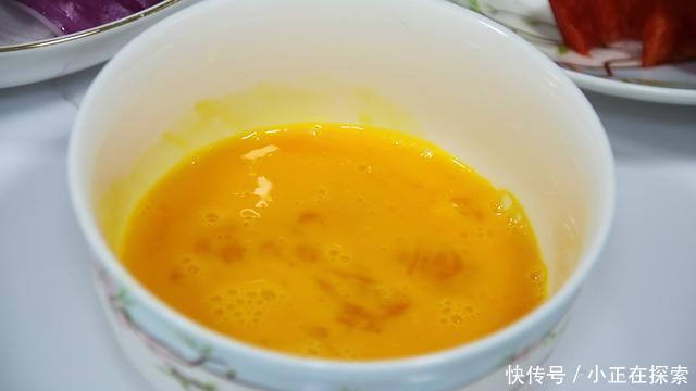 4、准备3个鸡蛋里面加2滴白醋、少许盐、少许清水打散,白醋可以去蛋腥味,蛋液中加点清水炒出来的鸡蛋更加嫩滑蓬松;