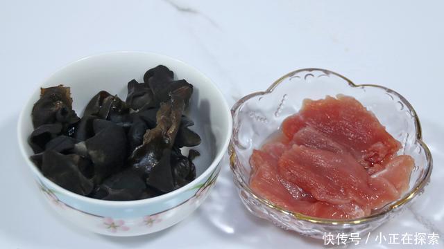 2、一小块猪肉切成片,小米椒斜着切圈;