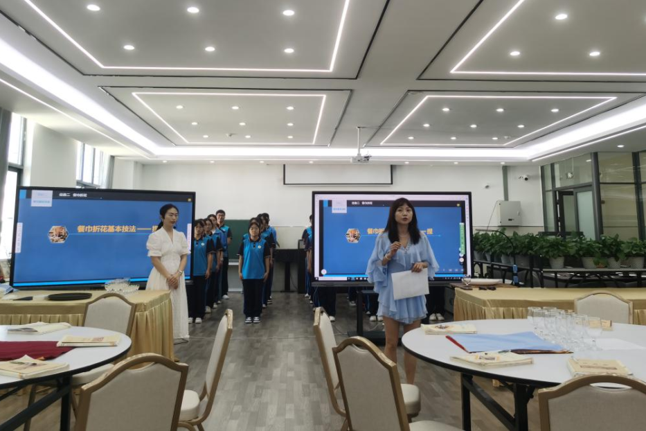 评课环节,刘海兰老师分享了自己的教学设计思路,旅游中心教研组成员进行一一点评。工业技师学院罗华婷老师指出课程教学设计目标明确,教学环节活动设置合理、详略得当;旅游专业带头人李兵老师提到该课堂结构紧凑,注重与学生的互动,营造了良好的课堂氛围,值得大家学习,但若在时间把控上进一步提升将更加完美;胡晓兰老师认为教师采用了讲授、示范、实操等多种教学方法,理论联系实际,通过亲自动手操作,加深了对折花技巧的理解与掌握,但在课程思政的部分还需要进一步挖掘。最后,职教中心教务处张安彬主任对整个教研活动作出总结发言,鼓励大家多多接触教研,参与教研,做好教研,实现职业教育向更高质量发展。