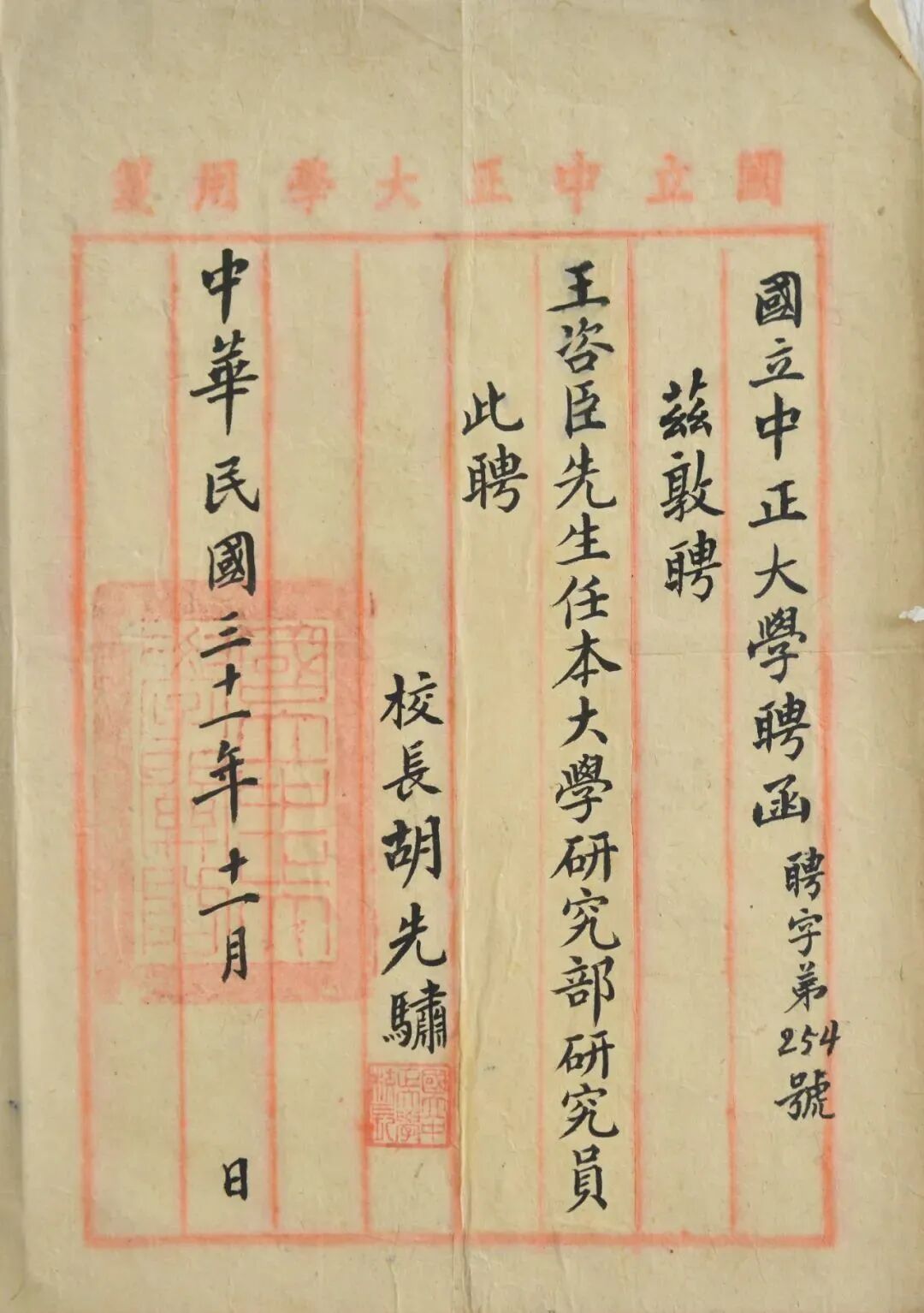 国立中正大学聘函