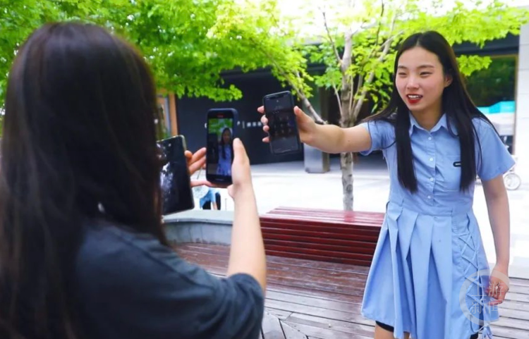 王志欣与团队成员在校园拍摄短视频。视频截图