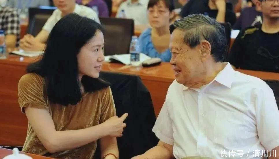 杨振宁先生身着白色衬衫搭配黑色裤子,展现出他一贯的严谨与庄重。而身旁的夫人则选择了一件棕色上衣,既不失优雅又显得温婉。两人的穿搭在会议室内显得格外得体,既符合场合的正式感,又彰显出他们各自的独特气质。